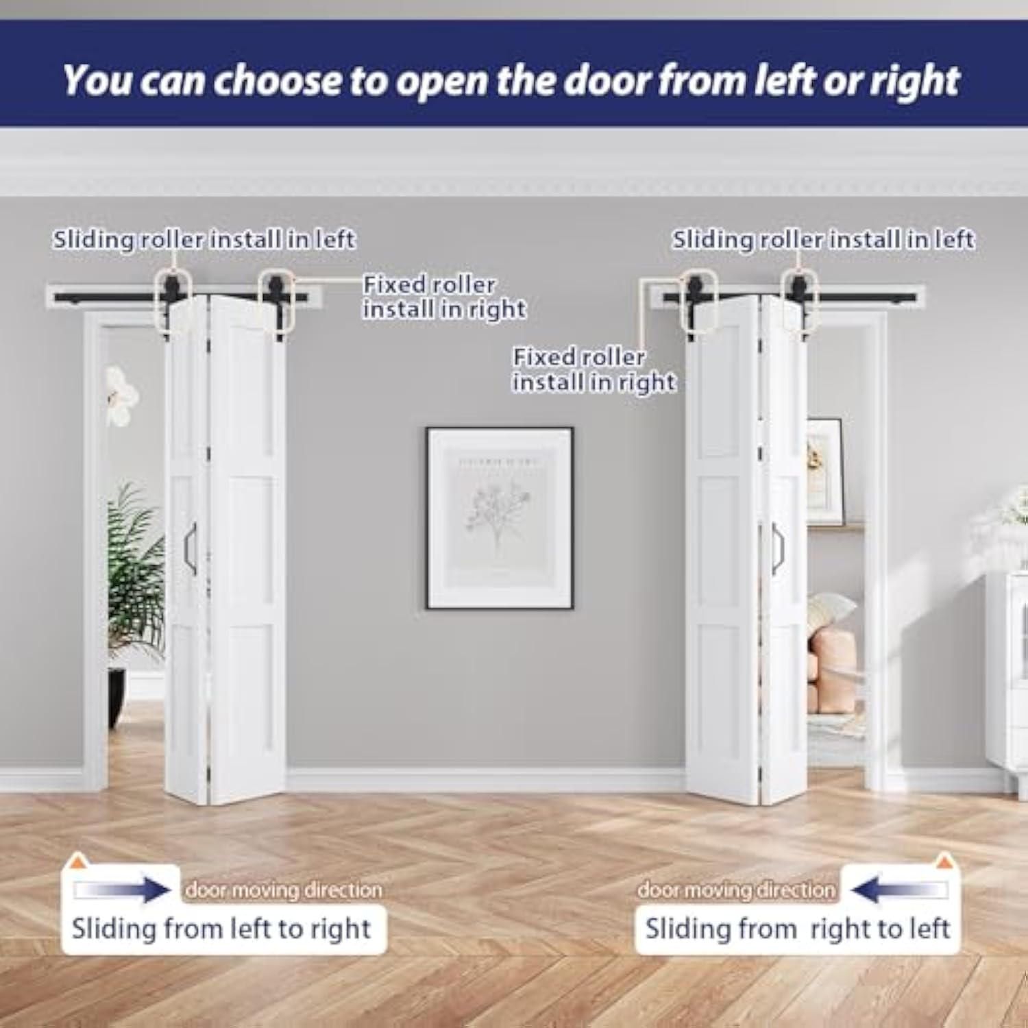 - olid MDF & PVC Surface:Our bifold closet barn doors are made of MDF, Which is durable and stable,the PVC surface was waterproof and easy to clean.