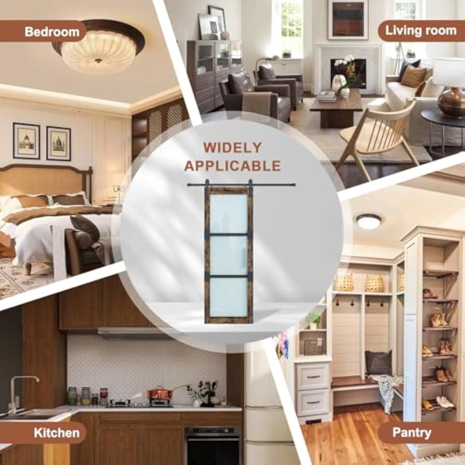 - Wlegant Vintage Barn Door: This brown glass barn door features a classic and minimalist design in vintage.The sliding design making it ideal for your remodeled living room, bathroom, bedroom, kitchen, closet, study or dressing room