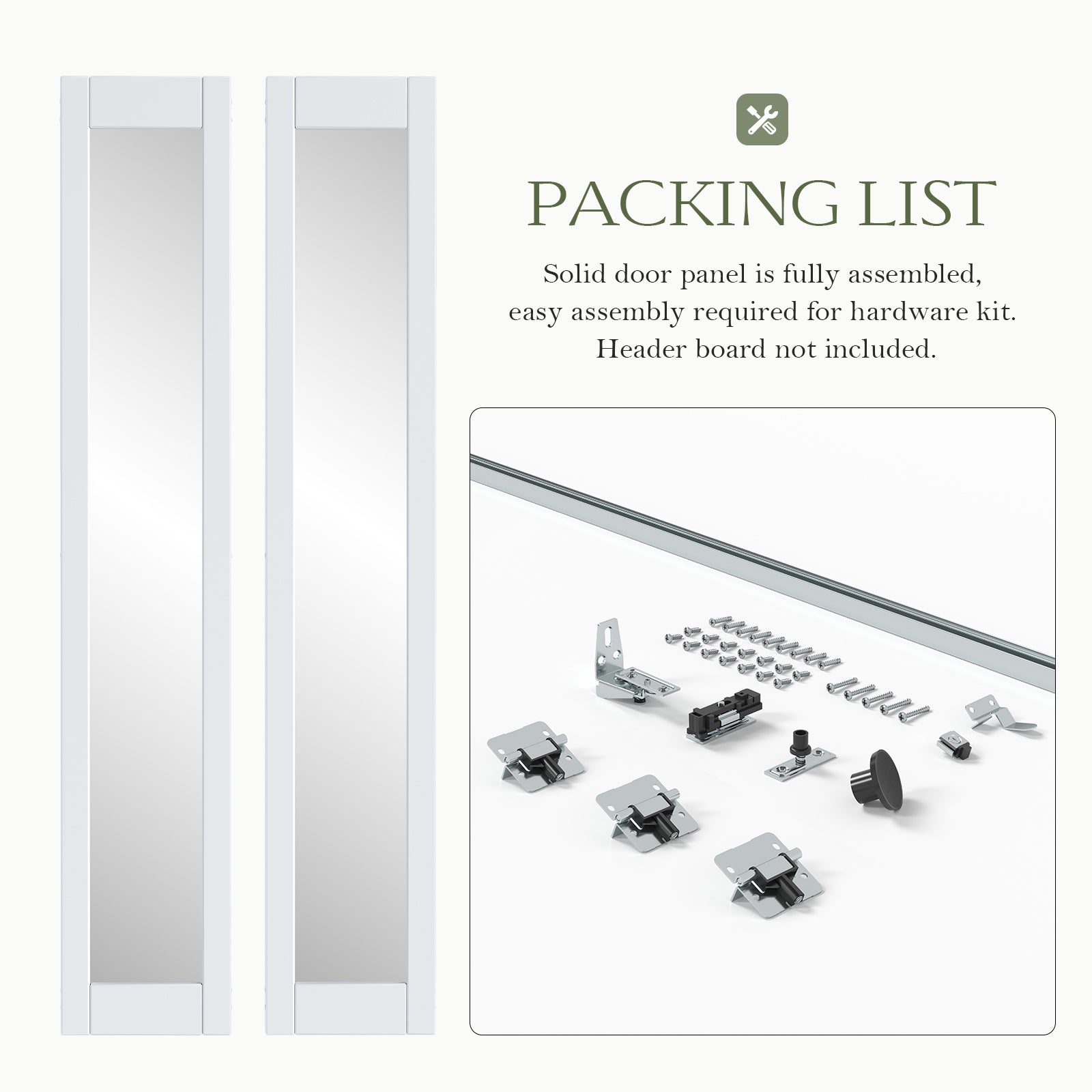 FREDBECK Preassembled Bifold Barn Door 30x84 (Double 15x84) with 1 Lites Mirror,Bi-fold Closet Doors Hardware Kit Included,34" Track for 2 Doors, PVC, White,for Living Room, Bathrooms, Kicthen