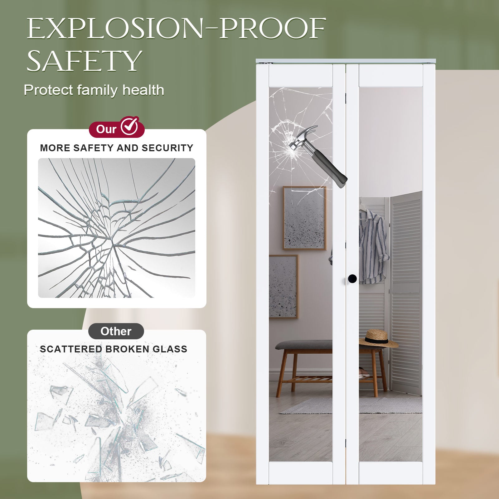 - Versatility: A folding barn door with a mirror not only serves as a door but also can be used as a mirror, providing dual functionality and increasing practicality. It can saving your space by placing the mirror over the door.make your room look both larger and brighter.It is suitable for dressing room, bedrooms, bathrooms, kicthen, and more, enhancing the overall decor of the room.