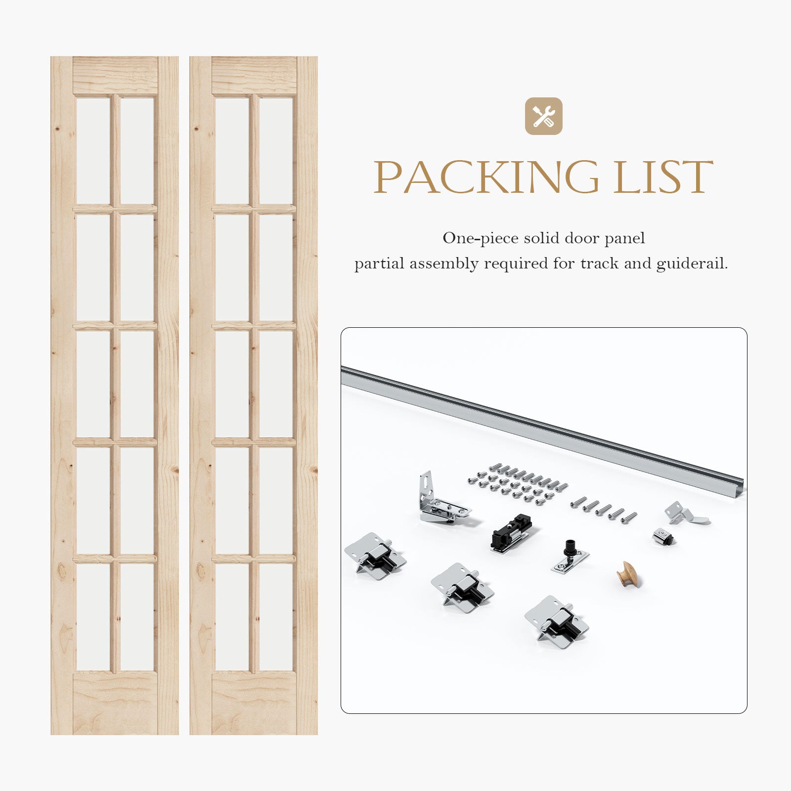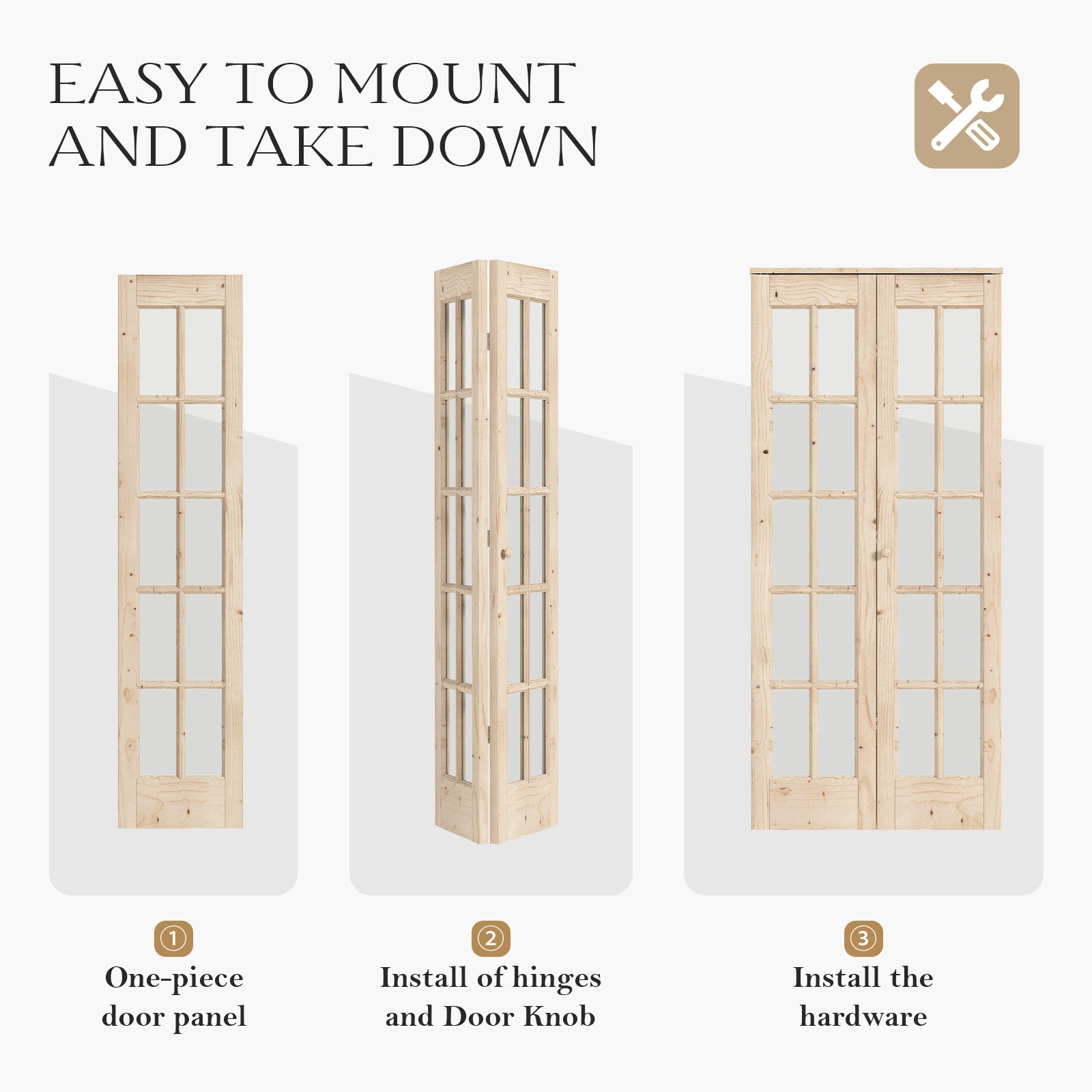 Unfinished Solid Wood Glass Bi-Fold Door With Installation Hardware Kit